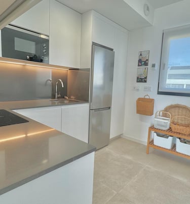 En la planta principal encontramos el salón-cocina-comedor en concepto abierto, tres dormitorios dobles con armarios empotrados y dos baños ( uno de ellos en suite). Por supuesto una terraza de más de 40 m2.