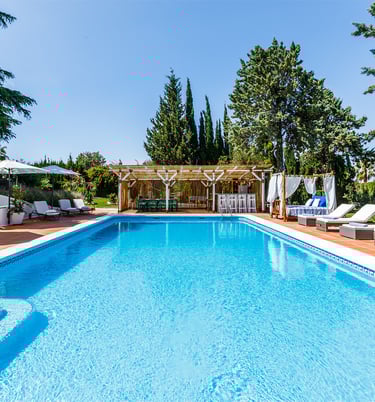 Son algunos de los privilegios que nos ofrece la magnífica villa andaluza que le presentamos en esta ocasión. Enclavada en la zona baja de la urbanización Pinos de Alhaurín, en Alhaurín de la Torre, a 10' del Aeropuerto, 20' de la playa más cercana y próxima a todos los servicios.