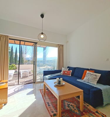Este precioso apartamento consta de un dormitorio con armario empotrado, cocina abierta totalmente equipada de muebles y electrodomésticos, salón con salida a una espectacular terraza de 15m2 (orientación sur) con vistas despejadas al campo y amplísimo baño de mármol travertino. TRASTERO Y PARKING INCLUIDOS EN EL PRECIO.