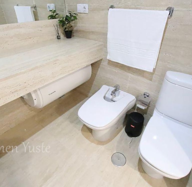 Excelentes calidades: suelos de mármol, carpintería interior de madera lacada en blanco, exterior de aluminio Climalit, totalmente amueblado, toldo recién instalado, aire acondicionado (bomba frío/calor) adaptado a personas con movilidad reducida, seguridad 24h y plaza de parking.